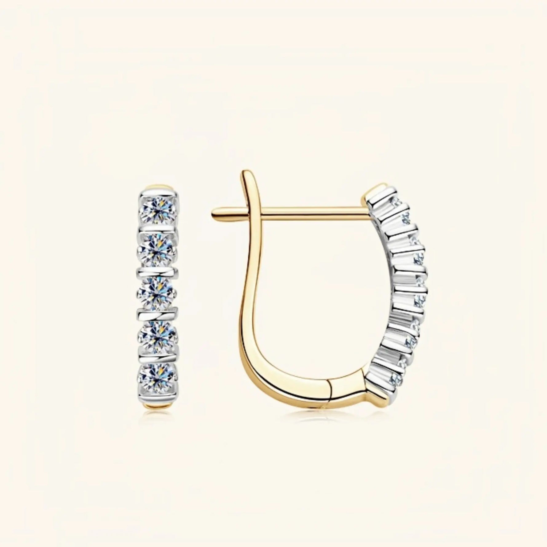 These moissanite hoop earrings feature a graceful curve adorned with dazzling 2.5mm stones, offering both radiant brilliance and elegant movement. Designed to symbolise lasting strength and clarity, each stone reflects inner confidence and emotional depth. A versatile piece for moments of self-expression, these hoops are a tribute to quiet power and beauty.