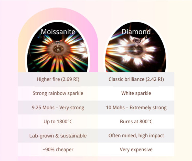 This design is refined yet full of character. The cool tones of sterling silver highlight the brilliance of each moissanite, creating a striking contrast that feels both modern and timeless in its meaning. Perfect for an engagement, renewal of vows, or as a meaningful gift, it brings elegance into everyday life.