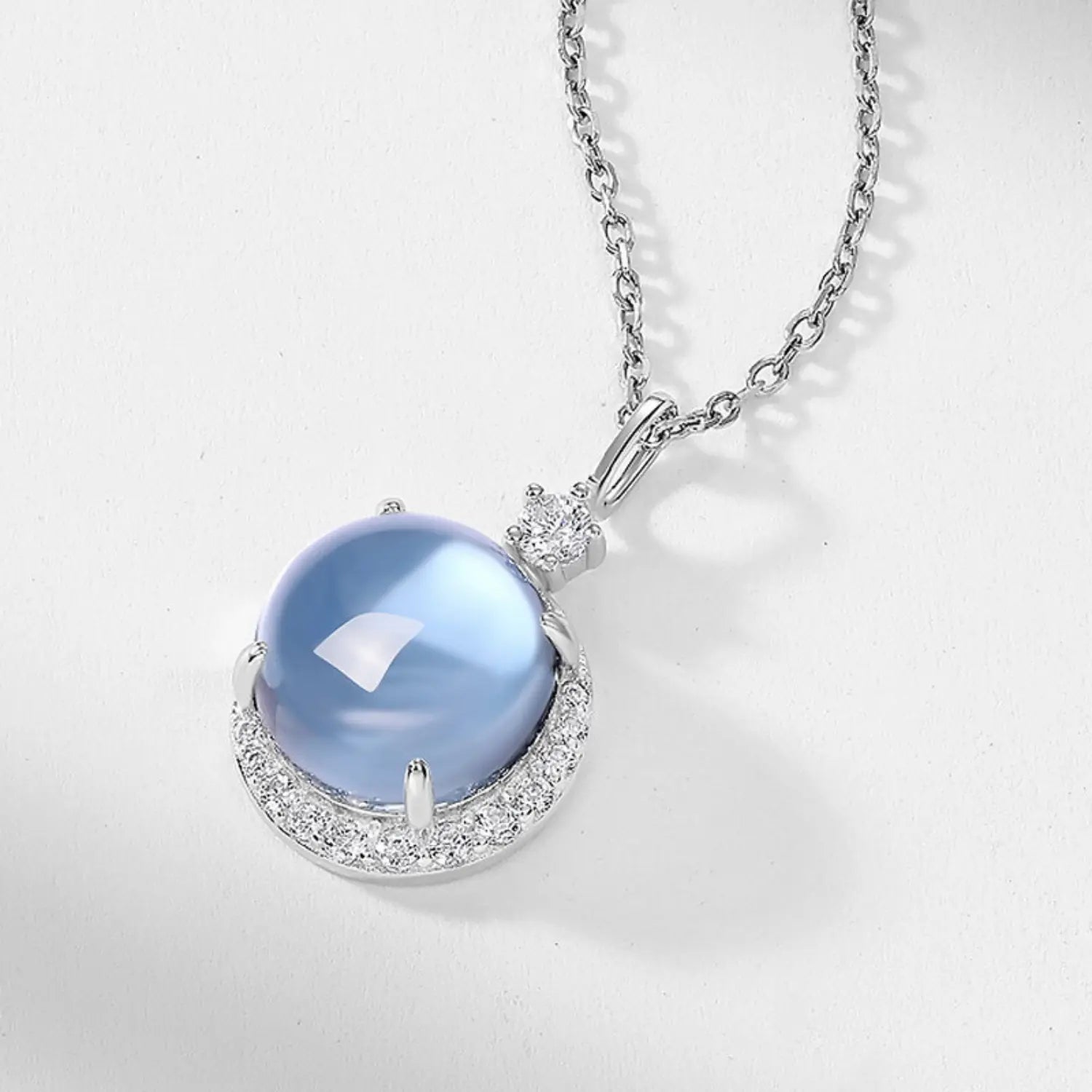 Our Blue Topaz Pendant, crafted from high-quality 925 sterling silver plated with white gold, is adorned with the enchanting essence of a 10x10mm blue topaz gemstone.