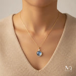 The blue topaz’s calming energy soothes emotional instability and promotes clear communication, making this pendant a meaningful and empowering addition to your jewelry collection.