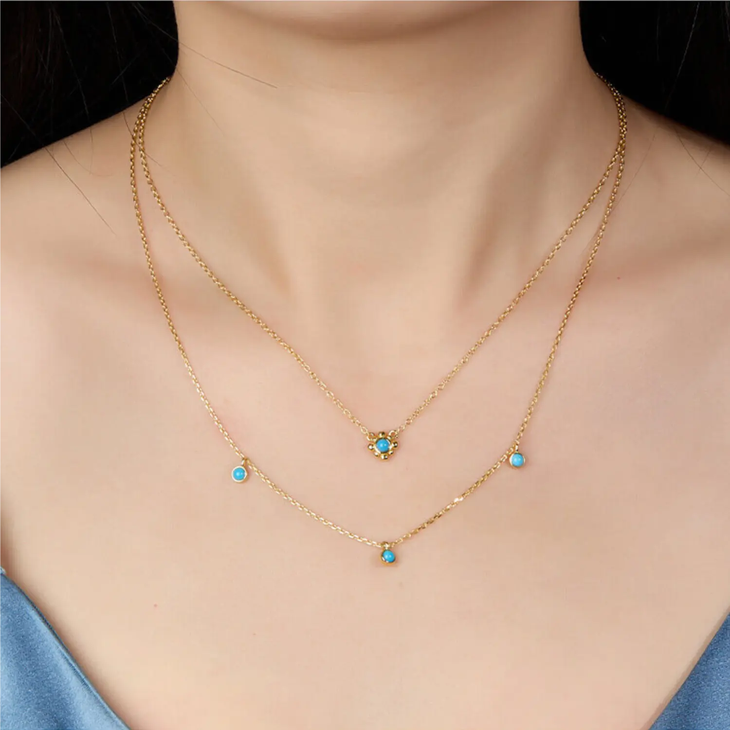 The Turquoise Beaded Necklace is a delicate design that brings serenity and subtle charm to your everyday style. Featuring three dainty turquoise beads, it carries the stone’s timeless symbolism of balance, protection, and positive energy.